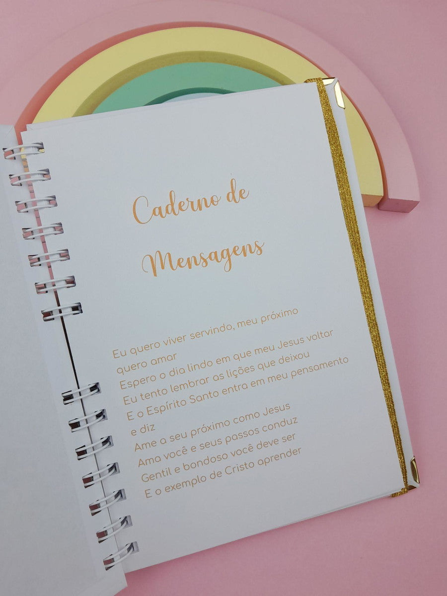Torne o batismo ainda mais memorável com este lindo Caderno de Assinaturas e Mensagens, feito especialmente para celebrar esse momento único na vida de quem escolheu seguir Jesus Cristo. 💖