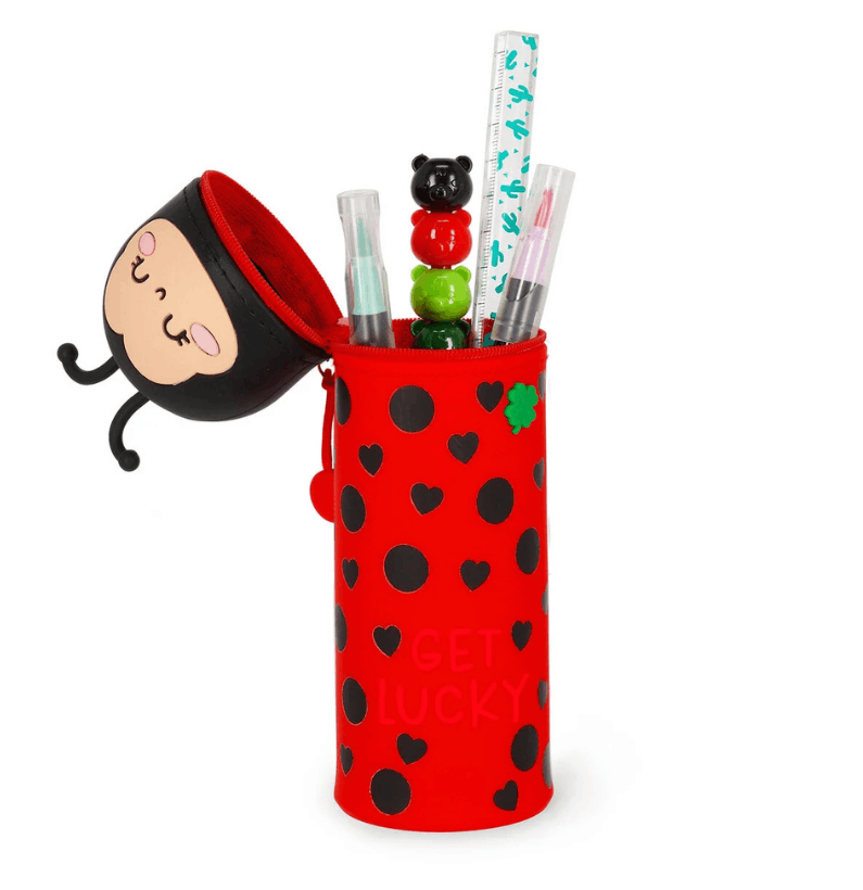 O Estojo de Lápis 2 em 1 Legami – Joaninha Kawaii é perfeito para a mochila escolar ou secretária. Feito em silicone macio e resistente, funciona como estojo escolar retrátil e também como porta-canetas de mesa, graças ao seu design inteligente com função deslizante.
